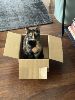 Lexie the cat will be spending most of Monday (and possibly Tuesday) safely tucked away in the guest bathroom. It’s not going to make her happy, but it beats her trying to pack herself into a box labeled “kitchen.”
