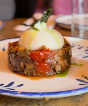 But here in Valencia? We found it around the corner, served as a starter with a generous burrata cheese on top. Caponata con burrata. Let that sink in for a second.