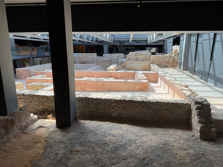 We also visited the Mediterranean for a quick sea view, and checked out the Roman ruins at L’Almoina. This is a genuinely cool site. From the outside, you can look down through shallow water over a glass floor to see the ruins beneath. Inside the center, you can trace the layers of Valencia’s past — Roman, Visigothic, and Moorish — all in one spot. It’s history underfoot.