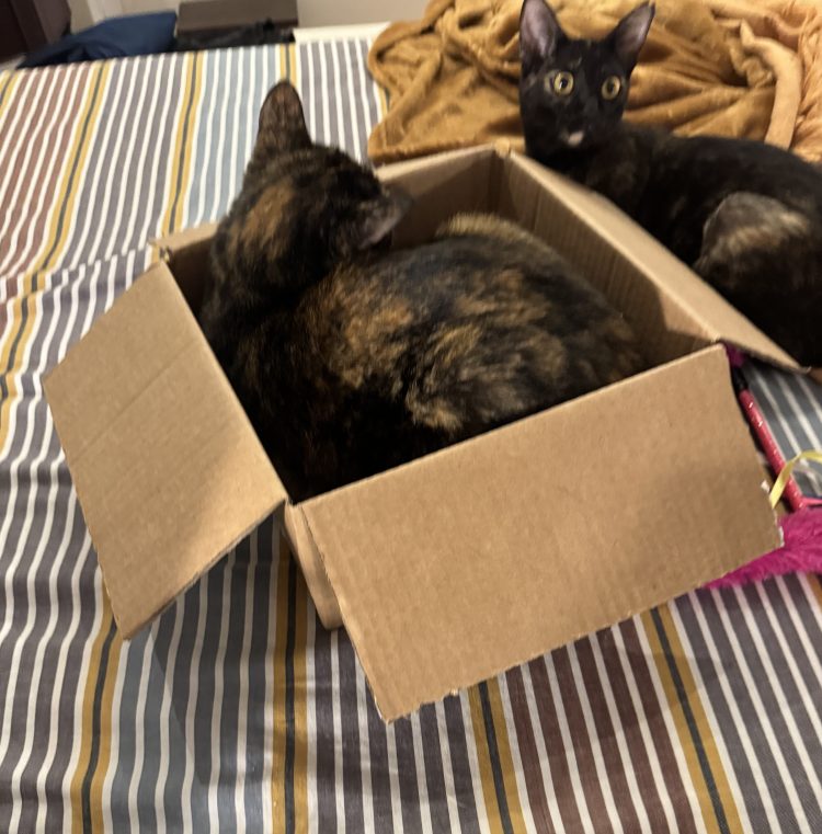 Over the first few days, we followed all the usual cat-introduction protocols with separate spaces, scent swapping, supervised visits. Rea adjusted quickly. Within a week, she and Lexie were playing, chasing each other, and hanging out together in the same room.